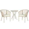 Rootz Garden Furniture Set - 2 Chairs - Table Tempered - Glass Table Top - Seat Cushions - PE Rattan - Seat Pads - Metal Frame - PE Rattan-Steel-Polyester - Khaki - 48W x 49D cm