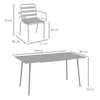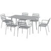 - The outdoor dining table set consists of a metal dining table and six armchairs