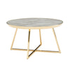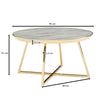Wir stellen Ihnen unseren eleganten runden Couchtisch vor, der über eine anmutige Tischplatte in Marmoroptik, stilvolle Goldbeine und ein modernes Design verfügt, das sich nahtlos in jeden Raum einfügt und Ihrem Wohnraum einen Hauch von Raffinesse und Funktionalität verleiht.