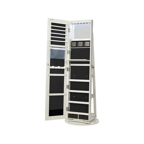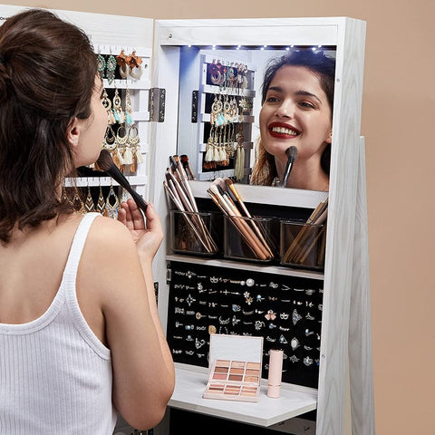 Rootz Schmuckschrank – Schmuckschrank mit Spiegel – Stehender Schmuckschrank – Ganzkörperspiegel – Schmuckaufbewahrungsspiegel – Weiß mit Holzmaserung – 54,5 x 54,5 x 162 cm