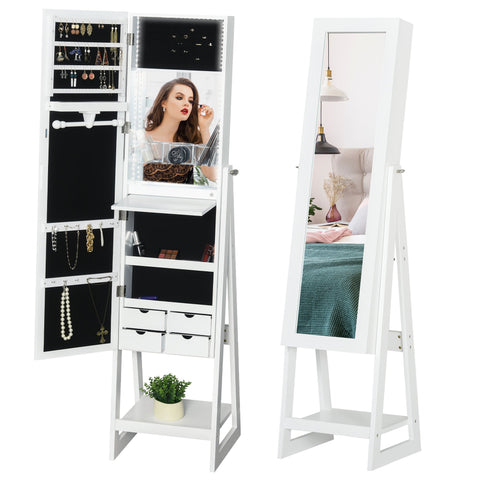Rootz Jewelry Cabinet with LED Mirror - Storage Unit - Organizer - Full-Length Mirror - 40W x 37D x 161H cm, White