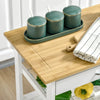 MEHRERE LAGERMÖGLICHKEITEN : Dieser Küchenwagen verfügt über eine praktische Schublade, einen ausziehbaren Korb und einen Schrank für reichlich Stauraum. Die Arbeitsplatte ist mit einer Saft- und Wasserrille ausgestattet, die die gesamte Feuchtigkeit auffängt, die von der Lebensmittelzubereitungsfläche abläuft