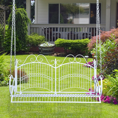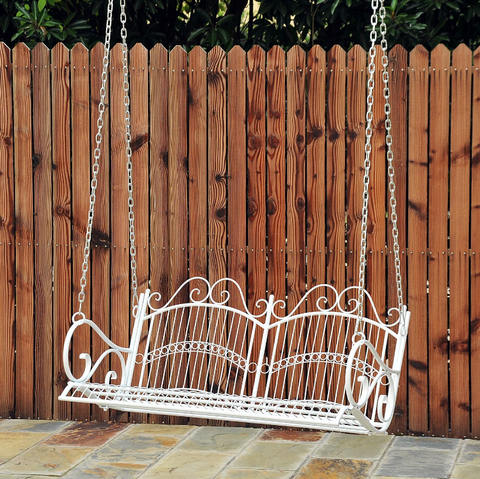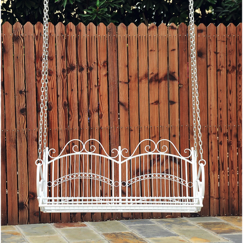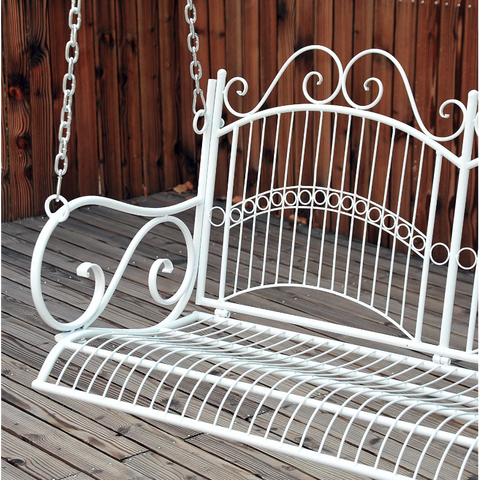 Rootz Hängebank – Gartenbank – Schaukelbank – Gartenschaukel – Ketten – Metall – Weiß – 118 x 58 x 57 cm
