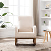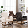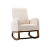 This soft mid-century modern rocking chair enhances your living room or bedroom. Measuring 69L x 94W x 101H cm and weighing 20.3 kg, it offers stable and comfortable seating with a high back, long armrests, and thick foam padding.