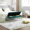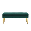 This stylish and functional storage bench features high-quality velvet fabric, sturdy gold metal legs, and comfortable padding. The multifunctional design includes internal storage space, making it a perfect addition to any room. Easy to assemble and versatile, it adds elegance to your home decor.