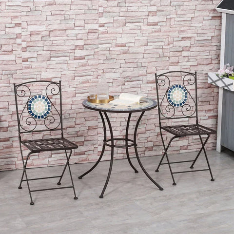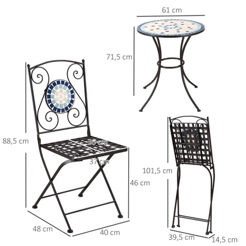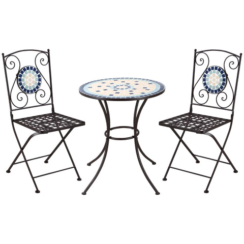 Rootz Nostalgic Design Bistro-Set – Gartentisch – Gartenstühle – Mosaiksteine – wetterbeständig – mehrfarbig – 61 cm x 61 cm x 71,5 cm