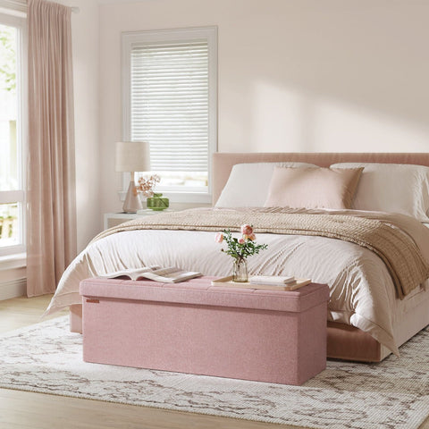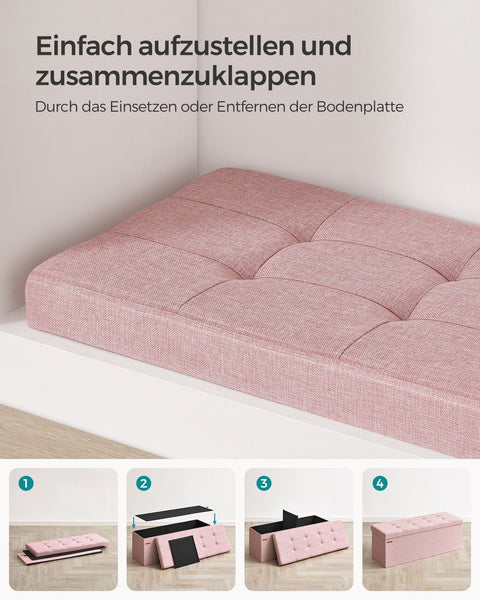 Rootz Pink Ottoman Storage Bench - MDF Upholstered Seat - Linen Finish - High Resilience Foam - 38cm x 110cm x 38cm - 300kg Capacity