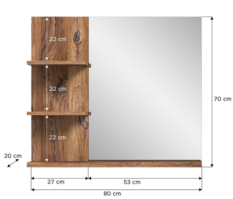 Rootz Ramon Wall Mirror - Gray Bathroom Furniture - Floating Shelves - Sustainable Wood Material - 80cm x 70cm x 20cm
