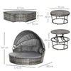 EINZIEHBARES ÜBERDACH : Das PE-Rattan-Möbelset für die Terrasse öffnet das Vordach und Sie können wohltuenden Schatten spenden, ohne blendendes helles Sonnenlicht zu bekommen. Schließen Sie das Vordach und schon können Sie die Sonne genießen. Wählen Sie Ihren Favoriten und bleiben Sie dabei oder passen Sie Ihre Einstellungen im Laufe des Tages an.