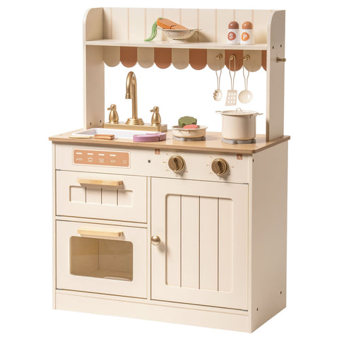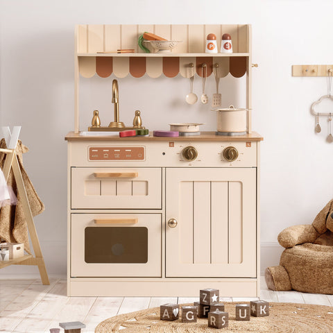 Rootz Realistic Design Wooden Kids Kitchen Playset - Children's Cooking Set - Pretend Play Kitchen - High-Quality Wood - Non-Toxic Paint - 90cm x 60cm x 30cm