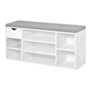 Suchen Sie eine Aufbewahrungsbank für den Eingangsbereich, die Platz für alle Ihre Schuhe bietet? Haben Sie Angst, dass Sie nirgendwo sitzen können, um die Schuhe zu wechseln? Dieser moderne Schuh-Organizer ist Ihre ideale Wahl. Dieses Schuhregal verfügt über ein dick gepolstertes Kissen, um Ihnen ein angenehmes Erlebnis zu bieten. Verfügt über ein großes Fassungsvermögen für 10 Paar Schuhe (Standardgröße). Außerdem sind die mittleren Regale auf der linken und rechten Seite verstellbar, um Schuhe unterschiedlicher Größe und Art aufzubewahren. Also zögern Sie nicht und nehmen Sie es jetzt mit nach Hause!