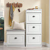 This sleek and compact shoe cabinet from The Rootz is perfect for small spaces like narrow hallways or apartments. Its robust construction is made from high-quality MDF and PB materials. The cabinet includes a discreet push-to-open drawer for storing essentials like shoe polish and keys. With its modular design, it's environmentally friendly and arrives in recyclable packaging. Achieve a tidy and organized hallway easily with this versatile and stable shoe organizer.