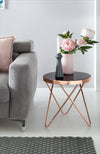 Eine stilvolle und funktionale Ergänzung für jeden Raum. Mit seinem eleganten Design, den V-förmigen Beinen und der von den 70er Jahren inspirierten Ästhetik kombiniert dieser Tisch kupferfarbenes Metall mit einer Tischplatte aus schwarzem Sicherheitsglas. Er bietet einen stabilen Stand, einfache Wartung und zusätzlichen Stauraum und ist damit eine vielseitige Wahl für Ihr Zuhause.