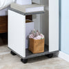 This mobile bedside table with shelves from Rootz has a modern design. The minimalist design combined with elegant white and gray tones give this sofa table its unique look. Thanks to its 4 wheels you can easily move it from place to place. Two parking brakes ensure stability. This flexible telephone table will quickly become an eye-catcher in your home.