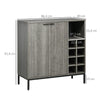 - Features a spacious table top, two closed cabinets, a wine rack and open storage compartments