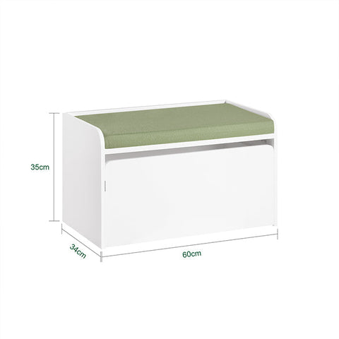 Rootz Toy Chest with Seat Cushion - Bench - Storage Box for Children - Movable with Wheels - Load Capacity 100kg - Green White - 60cm x 35cm x 34cm