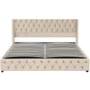 The Rootz Upholstered Bed with Hydraulic Bed Box and Rivets, 160×200 cm, Beige