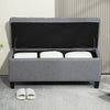 Enhance your home with the Rootz upholstered bench featuring storage space, linen-like polyester fabric, and rubberwood legs. Perfect for the entryway, living room, or bedroom.