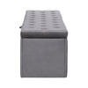 This elegant upholstered gray velvet bench is a versatile piece of furniture, perfect for use as a bed stool, footstool, or storage box. With dimensions of 138L x 41W x 42H cm, it offers generous storage space while adding a stylish and modern design to any bedroom. The soft velvet fabric provides additional comfort, making it a luxurious highlight in your home.