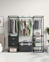Maximize your storage space with The Rootz Wardrobe Organizer. It features a sleek ebony black finish and is crafted from high-quality steel, MDF, and non-woven fabric. With ample room and sturdy construction, this organizer is perfect for decluttering your living space effectively.