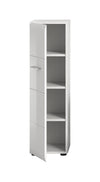 Optimize your space with The Rootz's exquisite storage unit. Its compact dimensions of 30 x 106 x 30 cm provide ample storage in style. Featuring a reversible door, three adjustable shelves, and four compartments, this unit is versatile for any room. Its high-quality MDF front with groove milling guarantees durability and elegance, while the easy-to-clean surfaces ensure effortless maintenance.