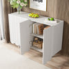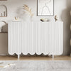 This teardrop-shaped sideboard combines modern design with practical functionality, featuring artfully carved doors, high-quality damping hinges, and efficient internal shelves. With its white chipboard construction, this sideboard not only offers elegance but also durability. Ideal for storing belongings, it measures 120L x 37.5W x 80.8H cm.