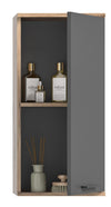 Rootz Wood Bathroom Wall Cabinet - Hanging Cabinet - Nox Oak Replica - Basalt Gray Front - FSC Certified - 37cm x 24cm x 77cm