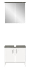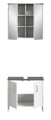 Elevate your bathroom's decor with The Rootz bathroom furniture set featuring a modern, easy-to-maintain design. The set includes a washbasin base cabinet and mirror cabinet for a complete look.