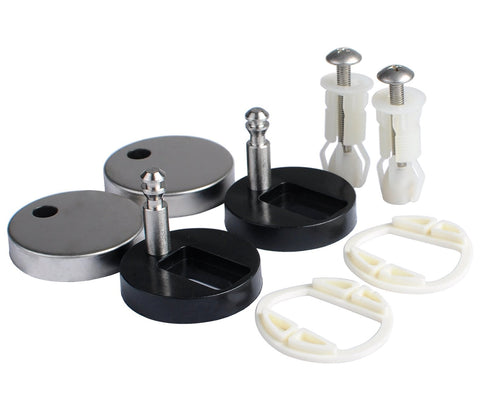 Rootz WC-Seat Fastening Set - Toilet Seat Hinge - Restroom Attachment - Lavatory Fixing Kit - Commode Bracket - Bathroom Fastener - Stainless Steel & Black - Refer to Images for Dimensions