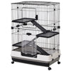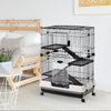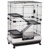 The Rootz Small Animal Cage with 4 Wheels, 3 Openings, 2 Platforms - Metal Black 81.2 cm x 52.7 cm x 110 cm