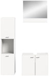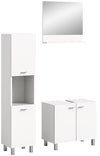 Simple and modern bathroom combination in bright white for a contemporary appearance. Extensive storage space with various compartments for bathroom items. High-quality materials ensure longevity and reliability.