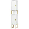 Elegant Design: Features gold finish, white doors with geometric patterns for a stylish look