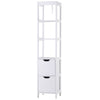 The Rootz multi-role cabinet is a versatile storage solution ideal for bathrooms, kitchens, or living rooms. It features a spacious design with 1 cabinet, 3 open shelves, and 2 drawers for ample storage. The anti-tip device ensures safety, and the robust MDF construction offers durability. Assembly is required.