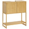 Stylish and Practical: Features open shelves and drawers in black and natural colors for a chic appearance.