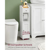 The Rootz Cabinet with Toilet Paper Holder is a stylish and functional addition to any bathroom. This white cabinet made of MDF features a top shelf with a max. static load capacity of 5kg, ideal for holding bathroom essentials.