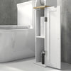 Organize and optimize your bathroom with this compact Rootz toilet paper holder featuring a slim design and integrated storage solutions. Perfect for small spaces, it comes with height-adjustable shelf levels and easy access cabinet door for convenience.