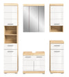 Elevate your bathroom with The Rootz 5-piece Combination Lambada set in Sonoma oak. This modern and timeless bathroom furniture set includes a tall cabinet, mirror cabinet, sink base cabinet, wall cabinet, and chest of drawers. Crafted with engineered wood, this set is designed for wet rooms, easy to maintain, and space-saving.