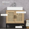Modern Boho-ontwerp: het Kleankin Boho-badkamermeubel heeft een modern Boho-ontwerp met rotanelementen, waardoor het een stijlvolle aanvulling is op elk badkamerinterieur. U-vormige uitsparing: Ontworpen met een U-vormige uitsparing, is deze kast geschikt voor gangbare leidingen. Wij raden aan om uw gootsteen op te meten voordat u koopt om een perfecte pasvorm te garanderen. Handige opbergruimte: Deze kast biedt voldoende ruimte voor het opbergen van toiletartikelen en andere hygiëneartikelen, waardoor uw badkamer georganiseerd en vrij van rommel blijft. Duurzaam en veilig: Gemaakt van hout voor betrouwbaar dagelijks gebruik. Het beschikt ook over een anti-kantelontwerp voor extra veiligheid, wat een lange levensduur garandeert.- Kleur: Eiken