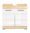 Elevate your bathroom with the Rootz Bathroom Furniture Set, crafted from high-quality wood materials. A combination of Sonoma oak and white high gloss finish, this set includes a Lambada washbasin cabinet with a deep-drawn front and two doors for ample storage.