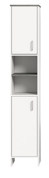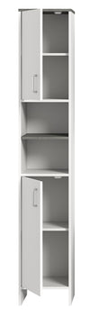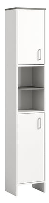 Introducing the Los Angeles tall cabinet, a bathroom furniture system crafted from wood with a white finish. This timeless piece features 2 doors, 2 open compartments, and 2 shelves for ample storage. It boasts a modern design suitable for wet rooms, easy to maintain with a simple wipe. The modular construction allows for versatile combinations with other pieces, saving space and promoting order.
