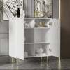 This elegant sideboard combines functionality and style with gold-plated feet and handles and a floral pattern, suitable for living room, bathroom, or bedroom. It features 6 compartments, 3 shelves, shockproof corners, and luxurious design.
