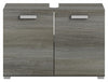 Enhance your bathroom with the stylish and functional Rootz Silver Washbasin Cabinet. This piece features a modern design and durable wood material suitable for wet rooms. The smoked silver finish adds an elegant touch, while the system design with 2 doors and 1 shelf provides ample storage space.