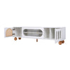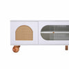 This TV cabinet combines modern design with natural elements, featuring rattan-like and sliding glass doors. Its elegant design adds glamor and functionality to any living room.