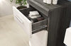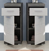 Enhance your bathroom with the Scout Narrow Chest of Drawers, featuring a white high-gloss deep-drawn front and a smoked silver imitation body. This versatile furniture piece includes 1 door, 1 drawer, and 1 shelf with full extension capability.