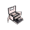 WAT ZIT ER IN DEZE DOOS? Je hebt 2 lades, 2 zijvakken voor kettingen en veel vakken voor ringen en andere accessoires in deze sieradendoos van 26 x 17 x 18 cm. Dit bespaart je niet alleen ruimte, maar ook tijd die je kwijt bent aan het zoeken naar sieraden