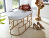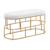 Onze moderne gestoffeerde bank is een strakke en stijlvolle zitoplossing met een comfortabele, gevoerde zitting, een elegant open frame en een verfijnde combinatie van wit en goud. Deze bank biedt zowel comfort als esthetische aantrekkingskracht en past bij elk interieur.