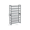 STABILITEIT STAAT VOOROP : Elke plank kan 4 paar herenschoenen of 5 paar damesschoenen (tot 10 kg) bevatten en blijft stabiel, zelfs als deze volledig is beladen. Voor extra veiligheid is een anti-kantelsteun inbegrepen, die u moet gebruiken wanneer u de schoenenorganizers op elkaar stapelt