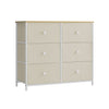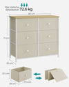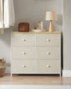 Stijlvolle opslagoplossingMet zijn kameelgeel-crèmewitte kleur en stoffen ladefronten voegt deze kast een vleugje elegantie toe aan elke kamer en past hij naadloos in elk interieur.
