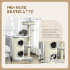 This Rootz cat tree features sisal rope scratching posts, platforms, a cat bed, a double-layer cat cave, and a hanging ball toy for interactive play, keeping your furniture safe from scratches.