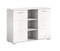 Elevate your storage solutions with the Rootz Prego Chest of Drawers, featuring a sleek white high gloss finish. This chest of drawers is designed with 3 doors, 3 open compartments, and 4 shelves for ample storage space.